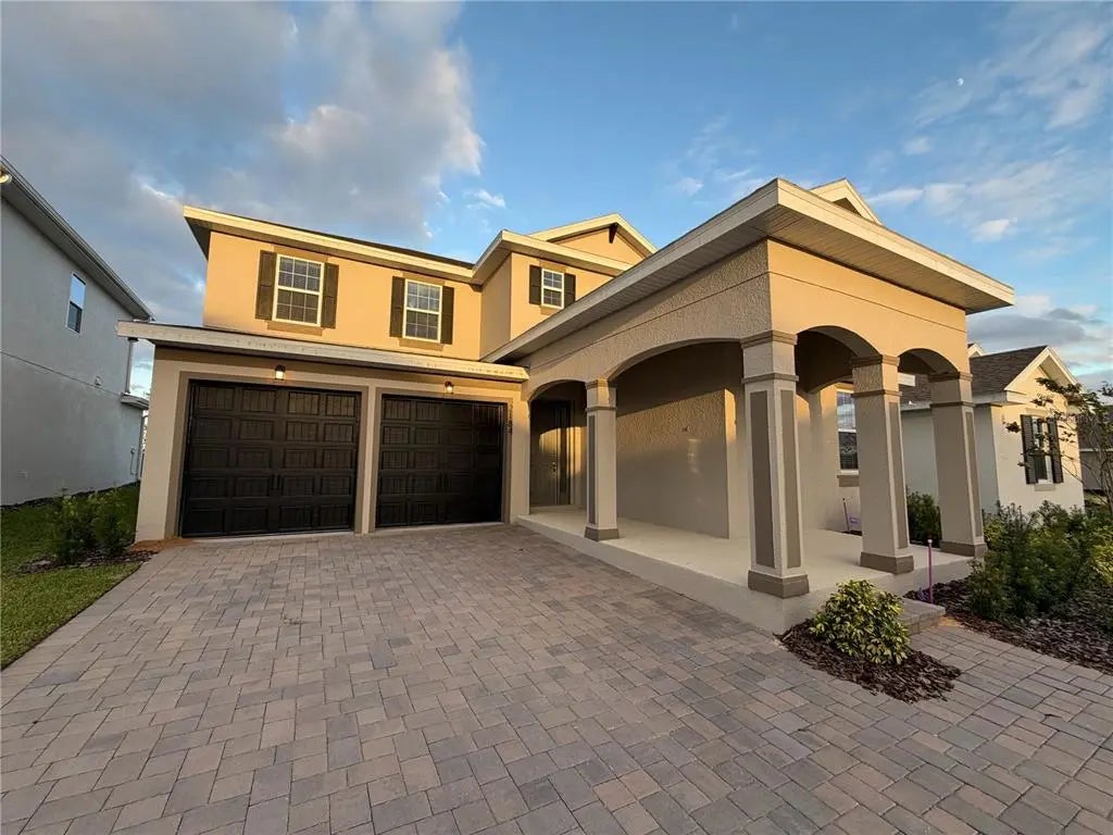 We are pleased to present this stunning newly built residence (2025), located in the desirable Hills of Minneola community. This home has never been occupied and is being offered for rent for the very first time, providing a truly brand-new living experience. This two-story home combines contemporary elegance, comfort, and functionality, offering an impeccable environment for those seeking to live with style and quality. Upon entering, you are welcomed by a grand foyer with soaring double-height ceilings, creating an immediate sense of openness and sophistication. The staircase and upstairs overlook, featuring wood railings and black iron balusters, form one of the home’s most striking architectural elements, adding character and presence from the moment you arrive. The social area has been designed to maximize natural light and connection between spaces. The bright kitchen, with soft-tone wood cabinetry and quartz countertops, flows seamlessly into the adjoining living spaces, creating the perfect setting for hosting and everyday living. As an added convenience, all appliances are brand-new — including refrigerator, range with oven, microwave, dishwasher, and washer-dryer set — providing both practicality and a refined touch to your daily routine. The home features four bedrooms, including a truly impressive primary suite that provides an atmosphere of refinement and relaxation. The primary bathroom showcases exquisite finishes, with quartz countertops and a stylish integrated vanity area. Upstairs, an additional suite offers extra privacy for guests, family members, or flexible use. Another highlight is the expansive bonus room, beautifully illuminated and featuring a floor outlet — ideal for a home theater, second living room, creative studio, or entertainment space. A dedicated office offers the perfect setting for those who work from home. Outside, the covered lanai and flat, landscaped backyard create a peaceful setting, with an open view of the green horizon and sky — a serene backdrop for moments of rest and contemplation. The home also includes exterior outlets pre-wired for cameras or festive lighting, enhancing convenience and flexibility. This residence features premium finishes and a contemporary, welcoming atmosphere, thoughtfully designed to offer absolute comfort and everyday practicality. A perfect balance of sophistication and well-being, this home provides a serene and inspiring environment, ready to welcome its new residents with exceptional charm and quality.